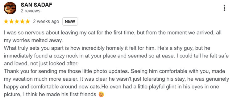 We keep things simple, clean, and cat-friendly. We understand your cat’s habits and comfort. At Sofie & Simba, we make sure your cat feels calm, cared for, and at home.